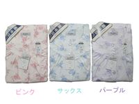 ピンク、サックス、パープルの3色からお好みに合わせて選べるのも魅力のひとつ。長袖と長ズボンのセットで、寒い季節でも暖かく快適に過ごせます。毛玉になりにくいスムース生地を使用しているため、長く愛用できるアイテムです。